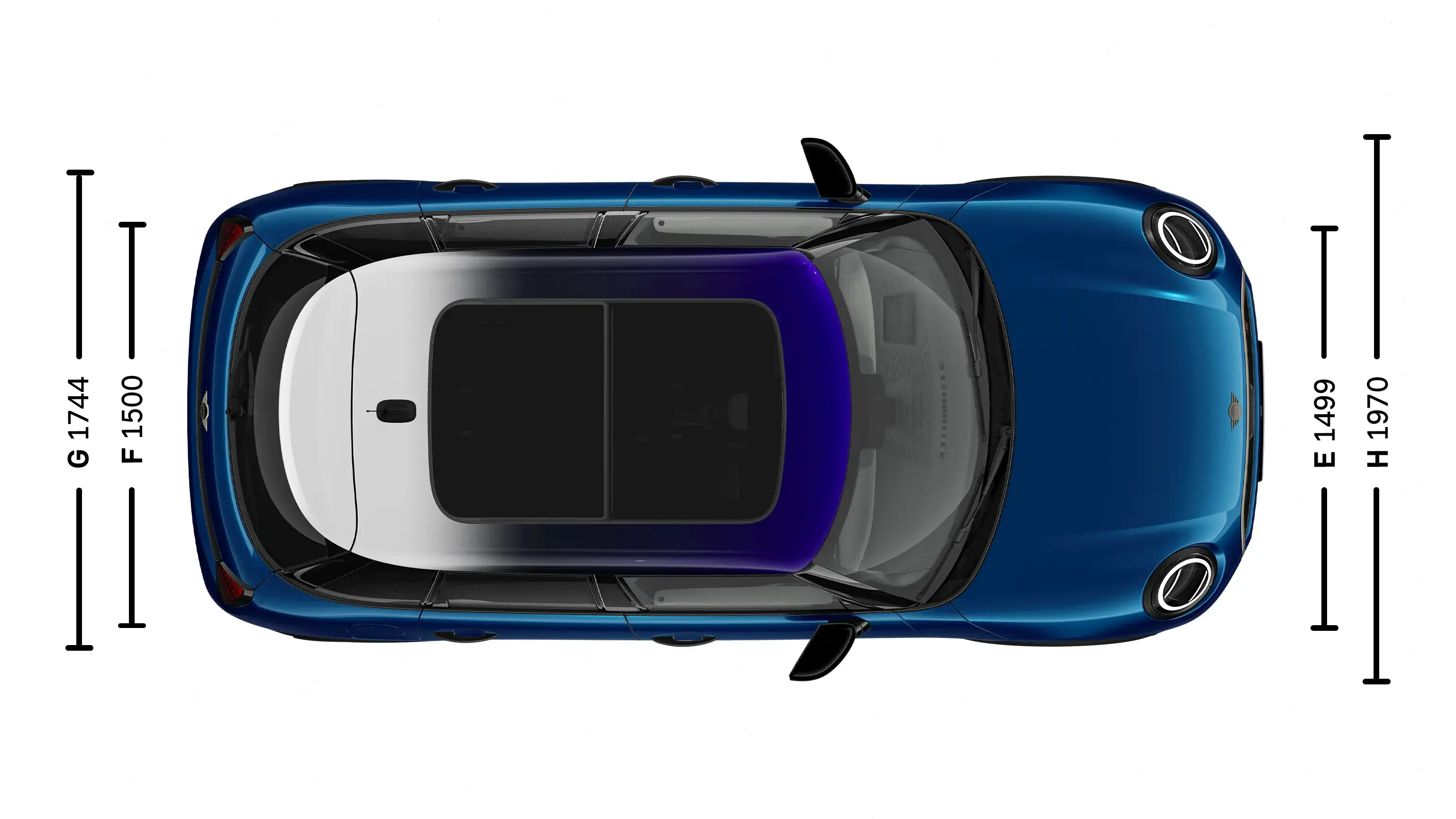 | (G) Espaço dianteiro para a cabeça com tejadilho de vidro panorâmico | 981 mm |